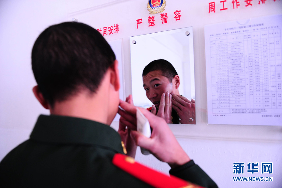 A soldier moisturizes skin with cream. (Xinhua/Ma Ding)