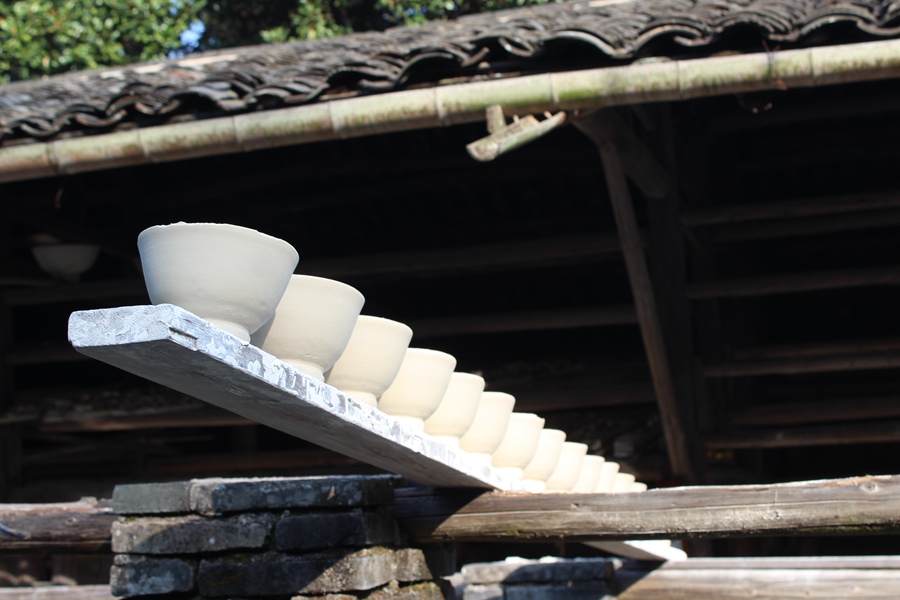 Unfinished porcelain bowls are put under the sun to dry before put into the kiln, at the Jingdezhen Ancient Kilns in Jingdezhen city, Jiangxi province on Nov. 18, 2014. (Photo/People's Daily Online)