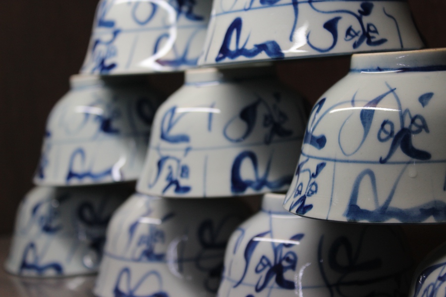 Finished porcelain bowls at the Jingdezhen Ancient Kilns in Jingdezhen city, Jiangxi province on Nov. 18, 2014. (Photo/People's Daily Online)