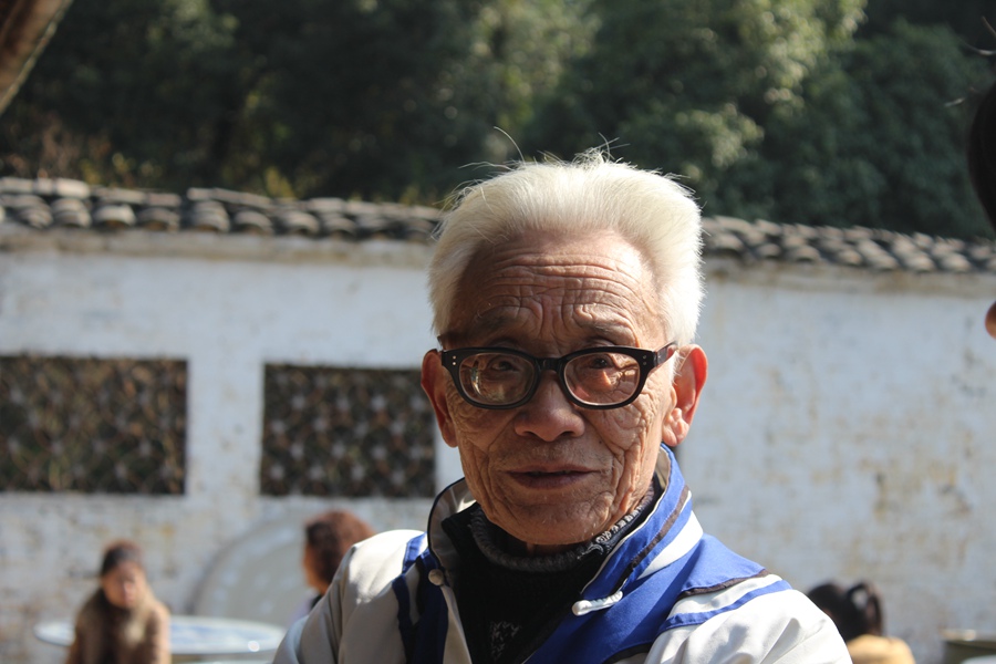 An elderly porcelain artist paints a porcelain piece at the Jingdezhen Ancient Kilns in Jingdezhen city, Jiangxi province on Nov. 18, 2014. (Photo/People's Daily Online)