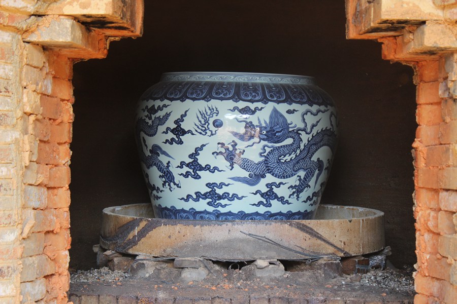 A dragon jar, which just finished a 15-day cooling down from a seven-day treatment in a kiln at the Jingdezhen Ancient Kilns on Nov 18, 2014. (Photo/People's Daily Online)