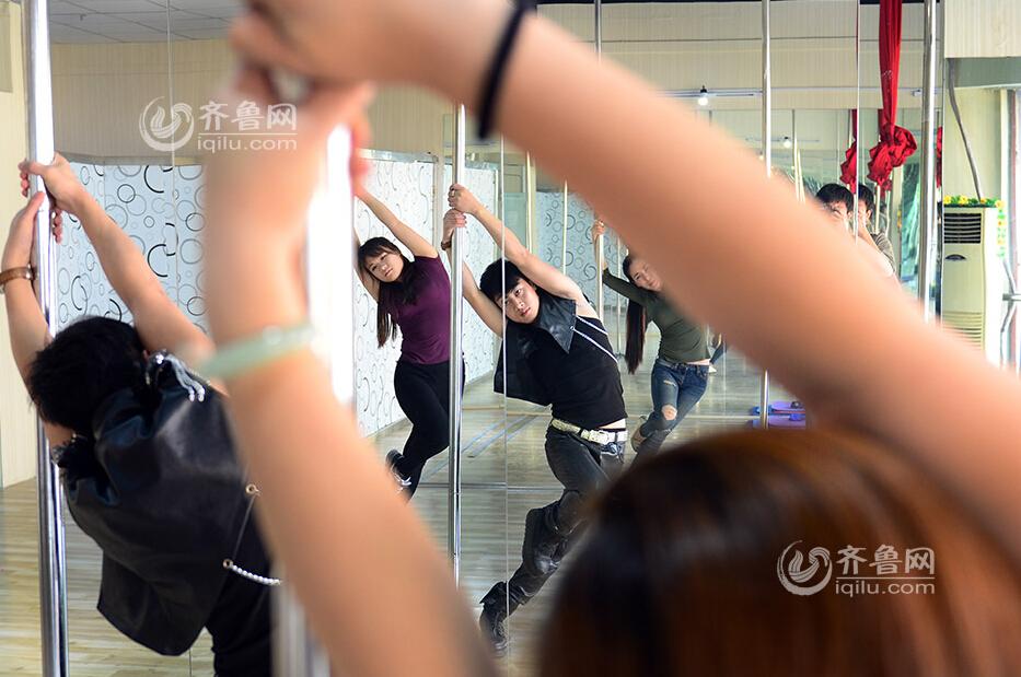 Dongdong recently runs a small dancing studio teaching pole dance. He is the only male pole dance trainer in Qingdao.(Photo/iqilu.com)