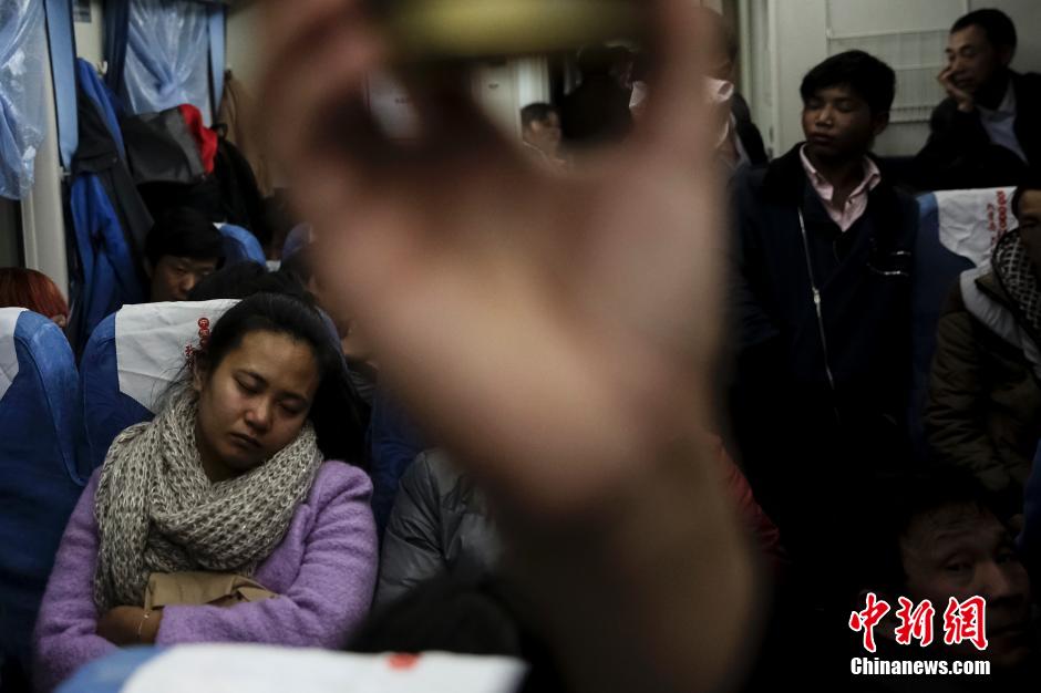 Shanshan takes a nap on the late train to Baoding. (Chinanews/Xiong Ran)