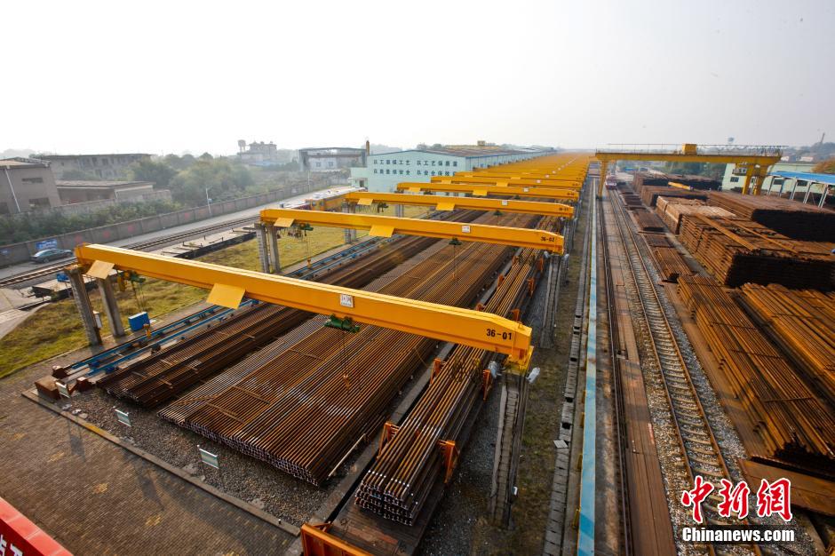 500-meter-long tracks lying in Xiangtang welding workshop. (CNS/Zhang Weidong)