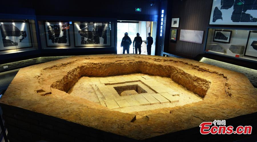 A model of the underground palace at the former Leifeng Pagoda is on display at the Zhejiang Provincial Museum in Hangzhou, Zhejiang province, Nov 27, 2014. The exhibition, featuring cultural relics unearthed from the famous Leifeng Pagoda, is the first large-scale display of its kind after the collapse of the Leifeng Pagoda 90 years ago.[Photo: China News Service /Li Chenyun] |