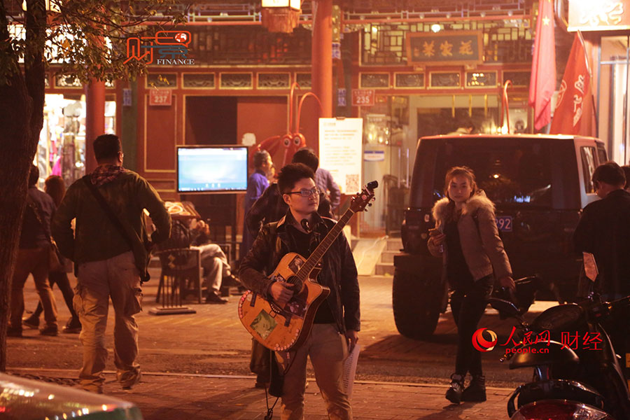 Hei Zipei, a stray singer in Beijing's Guijie. (Photo/finance.people.com.cn)