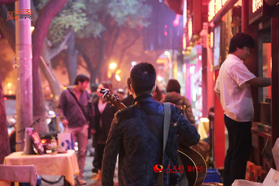 Hei Zipei, a stray singer in Beijing's Guijie. (Photo/finance.people.com.cn)