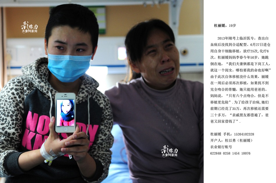 Mobile of Du Liyuan: 15264102328 Mobile of Li Chun (Du's mother): 15265319209 Account of Agricultural Bank of China: 622848 0258 1454 10076