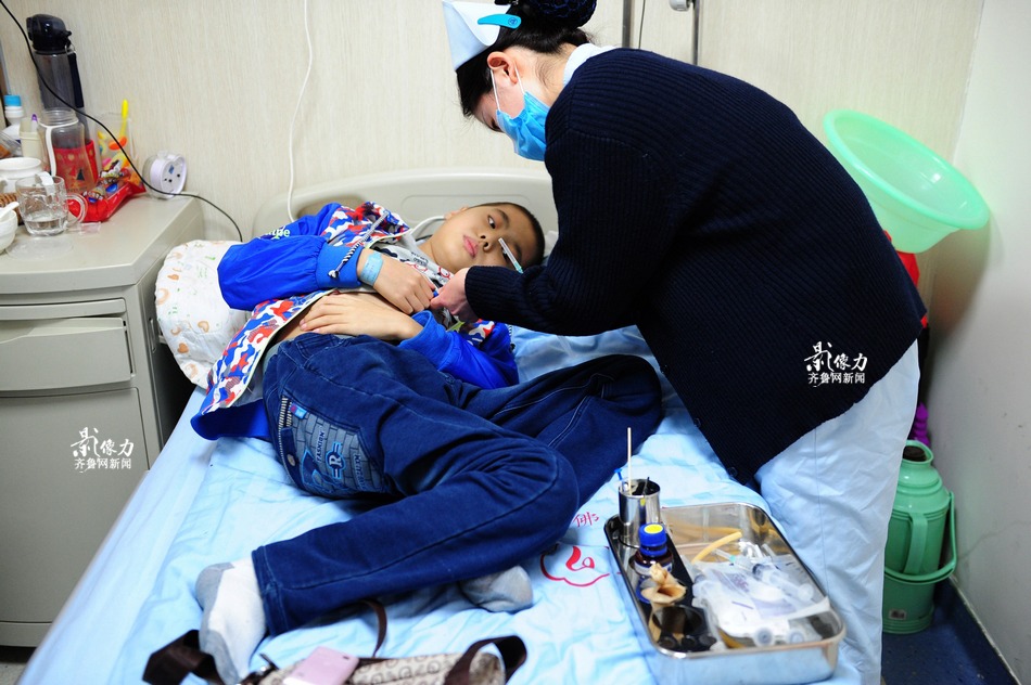 Huang Zheng, 11, has been staying at home for two years because of illness. Huang got marrow transplantation from his 18-year-old sister two months after he was hospitalized. Huang still needs to stay in hospital because of severe rejection reaction. Huang appeared to be extremely strong during treatments. (Iqili/Yu Peng, Li Ruiping) |