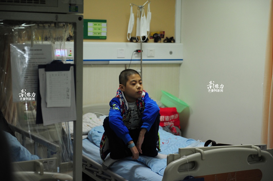 When Huang Zheng is alone, he tends to sit on bed and watches what is going on in the ward and occasionally plays his mother's mobile phone. (Iqili/Yu Peng, Li Ruiping)
