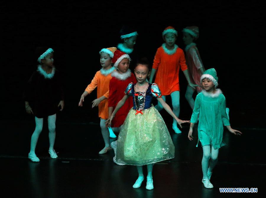 The students of Kongyan Dance Studio perform "Fairy Tales in Winter" at the International Theater in Frankfurt, Germany, on Nov. 30, 2014. (Xinhua/Luo Huanhuan)