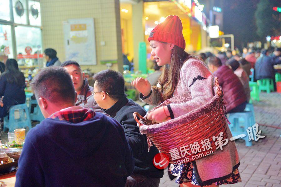 Photo shows Liu selling chestnuts at the market. (Photo/Chongqing Evening News)
