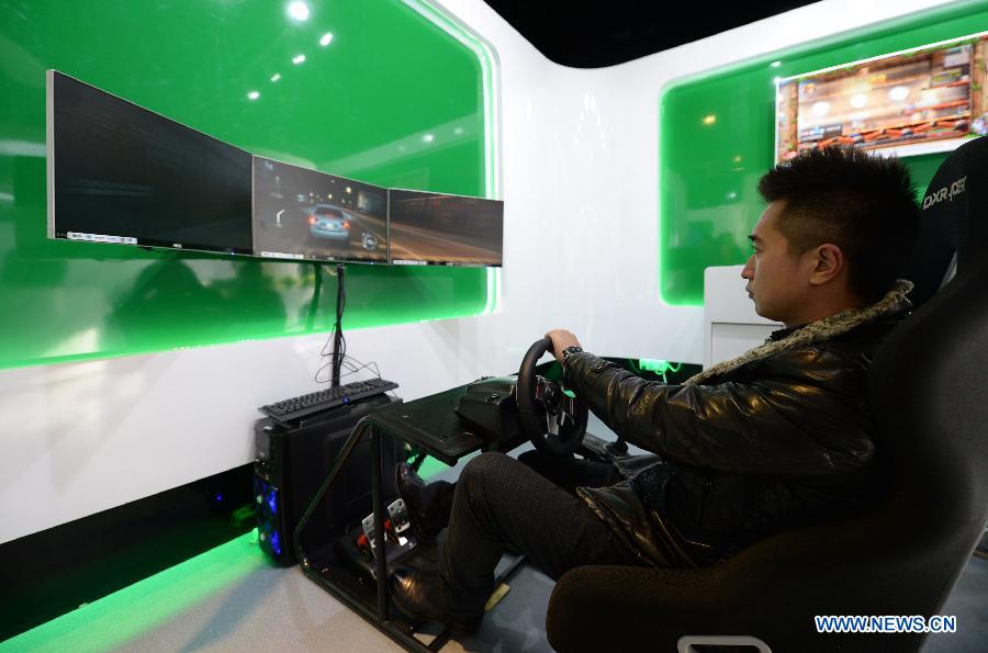 A man plays video games at the Microsoft Game Innovation Center in Dachang Hui Autonomous County, north China's Hebei Province, Dec. 2, 2014. The center which opened on Tuesday is the second incubation base of game innovation founded by Microsoft Corp in China. (Xinhua/Wang Xiao) |