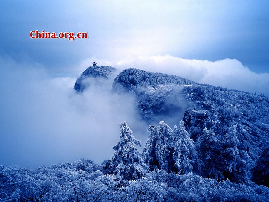 The Golden Summit is one of four scenic areas at Mt. Emei, a towering, beautiful mountain in central Sichuan province. The Golden Summit, the mountain's main peak at 3,079.3 meters above sea level, seems to almost touch the sky. There are four classic scenes at the Golden Summit: the sea of clouds, the sunrise, the "Buddha rays", and the "saint lamps." [China.org.cn by Zuo Jiang] |