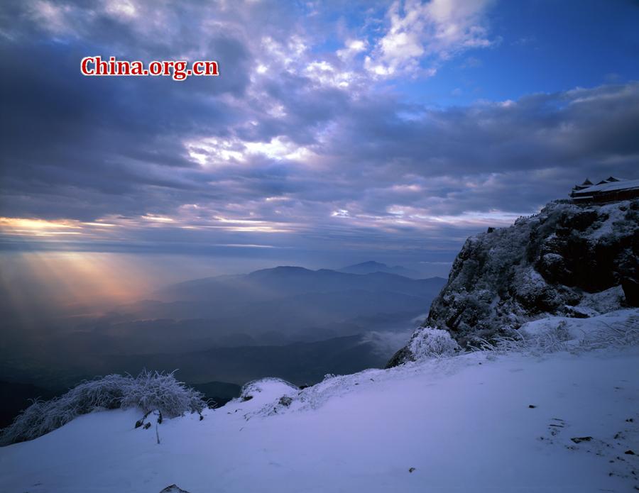 The Golden Summit is one of four scenic areas at Mt. Emei, a towering, beautiful mountain in central Sichuan province. The Golden Summit, the mountain's main peak at 3,079.3 meters above sea level, seems to almost touch the sky. There are four classic scenes at the Golden Summit: the sea of clouds, the sunrise, the "Buddha rays", and the "saint lamps." [China.org.cn by Zuo Jiang]
