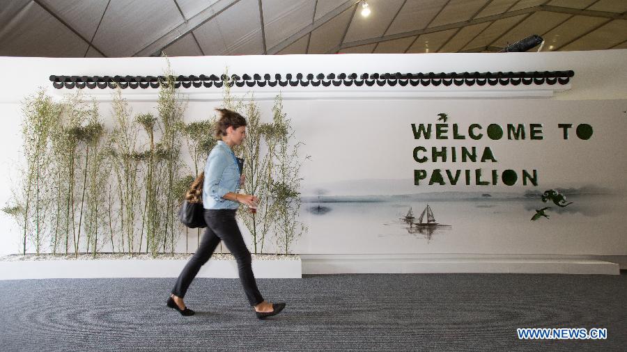 A woman walks past the China Pavilion at the UN Climate Change Conference in Lima, capital of Peru, Dec. 3, 2014. The activities in China Pavilion, which kicks off on Dec.5, will present 17 events including forums and press conferences featuring China's efforts and achievements in addressing the climate change. (Xinhua/Xu Zijian) |