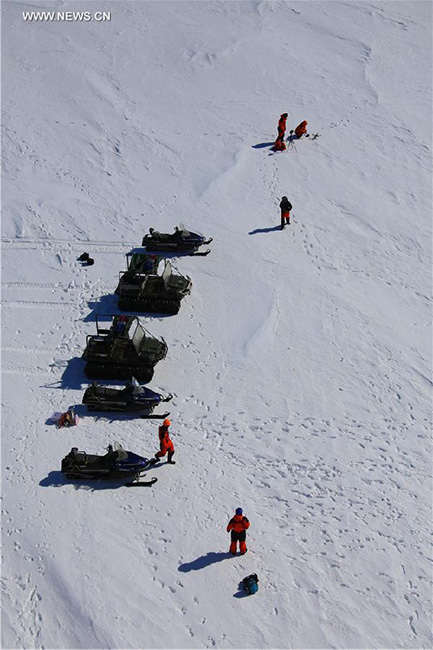 Members of the Chinese scientific expedition team on the Icebreaker Xuelong, or Snow Dragon, prepare to head for the Antarctic Zhongshan Station, a Chinese scientific research base in Antarctica, Dec. 3, 2014. (Xinhua/Bai Yang)
