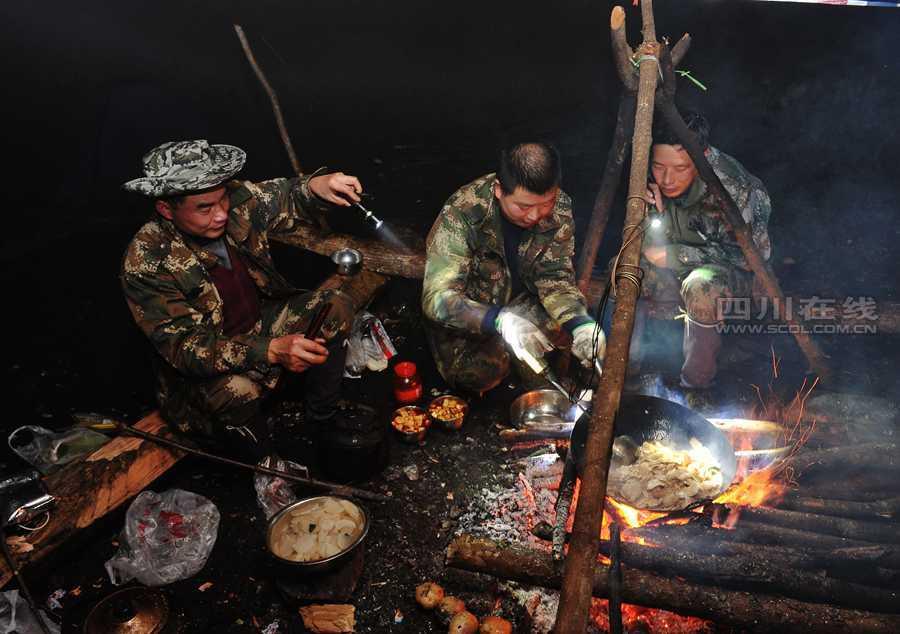 Zhou Honglin (midlde) prepares supper. (Photo/SCOL.com.cn)