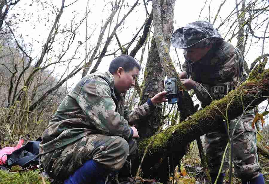 The rangers need to place infrared cameras in the forest, replace batteries regularly and copy the video images in the cameras.(Photo/SCOL.com.cn)