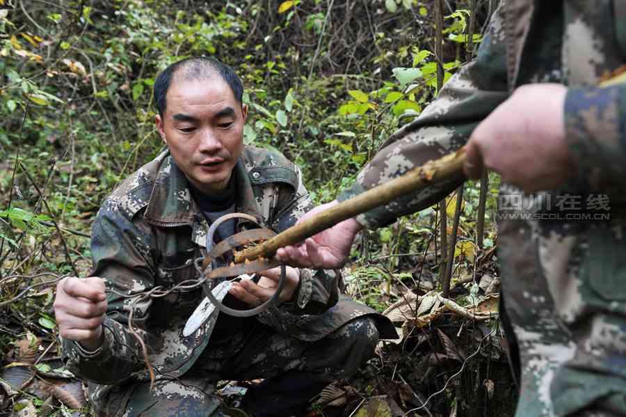 Rangers discover a steel trap and destroy it.(Photo/SCOL.com.cn)
