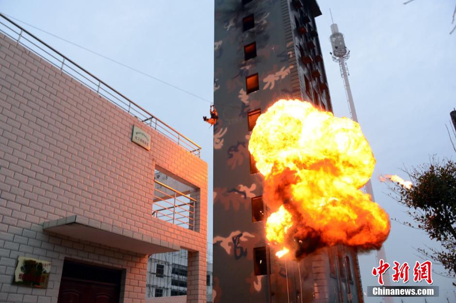 Recently, the armed police detachment in Deyang, southwest China’s Sichuan province, conducts an anti-terror drill to improve their combat capability. Soldiers successfully completed all the training subjects, winning warm applause from the audience. (Liu Yangkuan/Chinanews) |