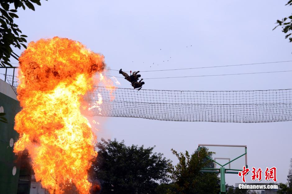Recently, the armed police detachment in Deyang, southwest China’s Sichuan province, conducts an anti-terror drill to improve their combat capability. Soldiers successfully completed all the training subjects, winning warm applause from the audience. (Liu Yangkuan/Chinanews)