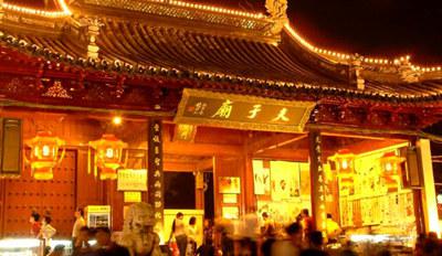 Fuzimiao (Confucius Temple) was originally built during the Song Dynasty and is situated on the north bank of the Qinhuai River. Today, the entire area around the Temple are covered by a series of tourist shops, snack bars, restaurants and entertainment arcades in "Ming" and "Qing" style architecture. The traditional snacks here are the biggest attraction for the tourists. There are more than 80 kinds of traditional Chinese snacks inherited since the Six Dynasties period.