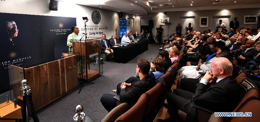 South Africa's Science and Technology Minister Naledi Pandor speaks at the opening ceremony of the Nelson Mandela Condolence Books Exhibition at the Nelson Mandela Centre of Memory of Johannesburg, South Africa, on Dec. 4, 2014. The Nelson Mandela Condolence Books Exhibition was held Thursday to mark the upcoming first anniversary of the late South Africa's President Nelson Mandela's passing which falls on Dec. 5, 2014. A total of 4850 condolence books which were brought by South Africa's embassies all over the world and more than 100 domestic condolence books are scheduled displayed during the exhibition. (Xinhua/DOC/Kopano Tlape) |