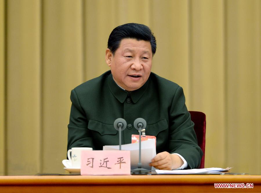 Chinese President Xi Jinping, also general secretary of the Communist Party of China (CPC) Central Committee and chairman of the Central Military Commission (CMC), addresses a meeting of the armament work of the People's Liberation Army, which is held in Beijing, China, from Dec. 3 to 4, 2014. (Xinhua/Li Gang) |
