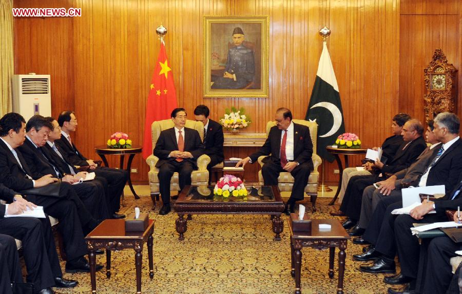 Pakistani President Mamnoon Hussain (R, center) meets with visiting Chinese State Councilor Guo Shengkun in Pakistan's capital Islamabad, Dec. 5, 2014. (Xinhua/Huang Zongzhi)