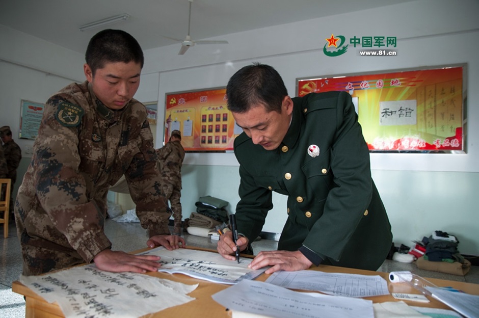 Wu Xuhui’s hand writing is very good. He helps others write their addresses. "I still want to do something for my brothers-in-arm." (81.cn/Cai Chuang)