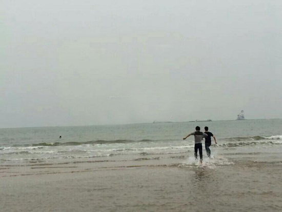 The first college students burst into the sea to stop the woman from committing suicide. (Photo source: @People’s Daily)