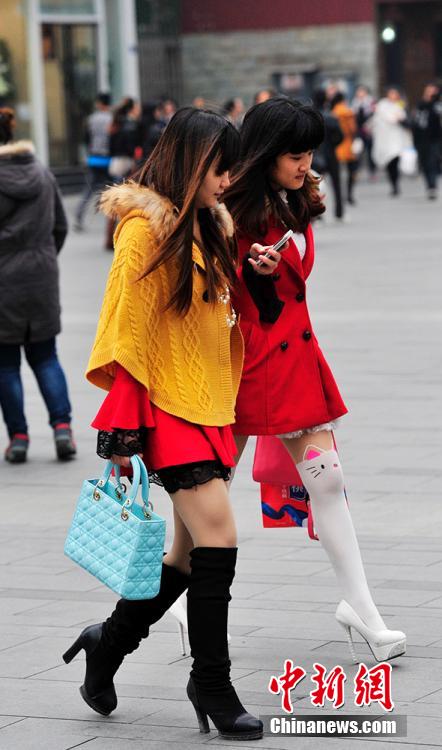Photo shows the stylish woman walking in the street in Chengdu, southwest China's Sichuan province in winter. Despite of the cold weather, women in Chengdu still prefer skirta. (CNS/An Yuan)