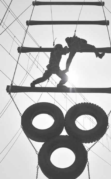 Two soldiers from the People's Liberation Army garrison in the Macao Special Administrative Region during a training session at the barracks. Provided to China Daily