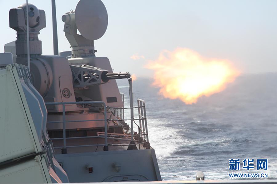 The 18th escort taskforce of the Chinese People's Liberation Army Navy (PLAN) and the guided missile destroyer "Sterlite" of the U.S. Navy conduct a China-U.S. joint maritime anti-piracy drill in the waters of the Gulf of Aden on Dec. 11, 2014. (Photo: Xinhua/Ren Jianwen)