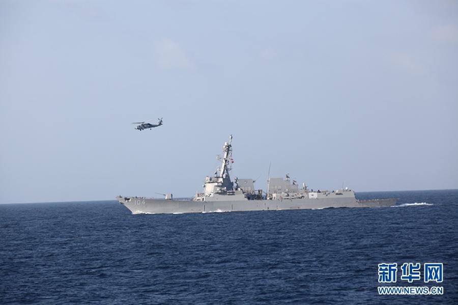 The 18th escort taskforce of the Chinese People's Liberation Army Navy (PLAN) and the guided missile destroyer "Sterlite" of the U.S. Navy conduct a China-U.S. joint maritime anti-piracy drill in the waters of the Gulf of Aden on Dec. 11, 2014. (Photo: Xinhua/Xiao Yong) |