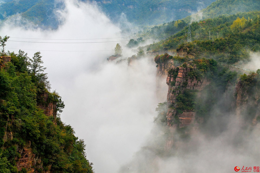 Located 40 kilometers east of Lingchuan county, north China’s Shanxi province, Xiyagou Valley is at the foot of Wangmangling Mountain, which is famous for its perilous peaks and sea of clouds. The valley is about 1,000 meters lower than the peaks around, making the landscape exceptionally splendid. (Photo source: people.cn)