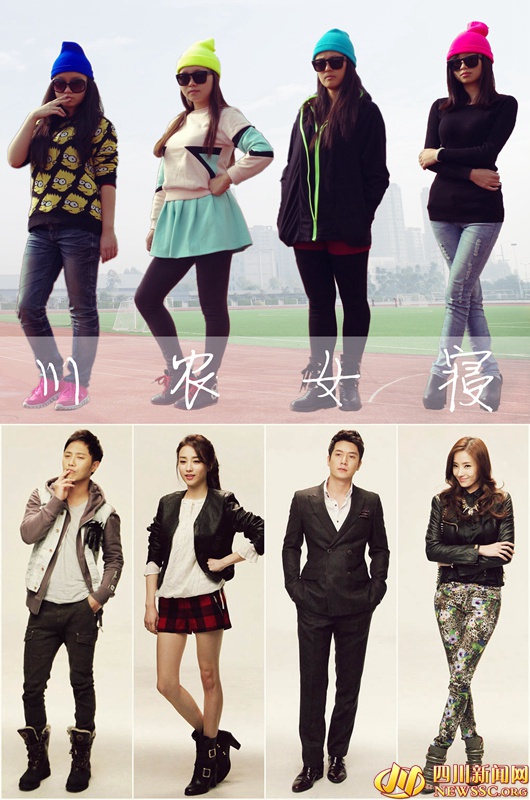 A group of cosplay photos by students from Sichuan Agricultural University goes viral on the Internet. Girls on the photo wear same sunglasses and hats in different colors, posing exactly like the characters on movie and TV show posters.