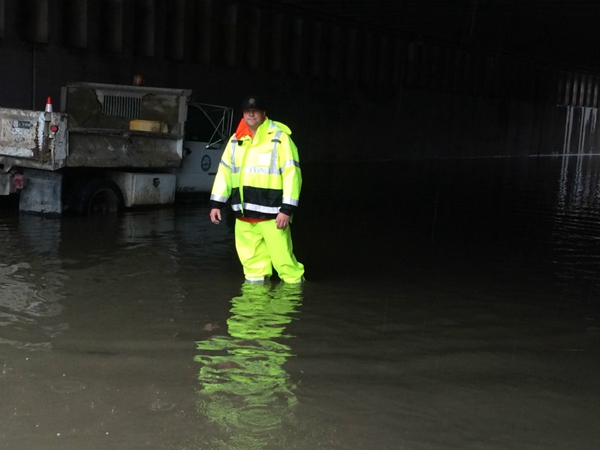 A huge rain storm batters Northern California with large-area power outages in San Francisco Thursday, which affects thousands of citizens. Heavy rain flooded sections of Highways and local commute roads, even forcing San Francisco to shut down its famed cable car system. (People's Daily Online/Han Shasha)