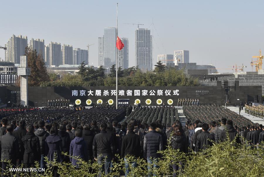 The state ceremony for China's first National Memorial Day for Nanjing Massacre Victims is held at the memorial hall for the massacre victims in Nanjing, capital city of east China's Jiangsu Province, Dec. 13, 2014. (Xinhua/Xie Huanchi)