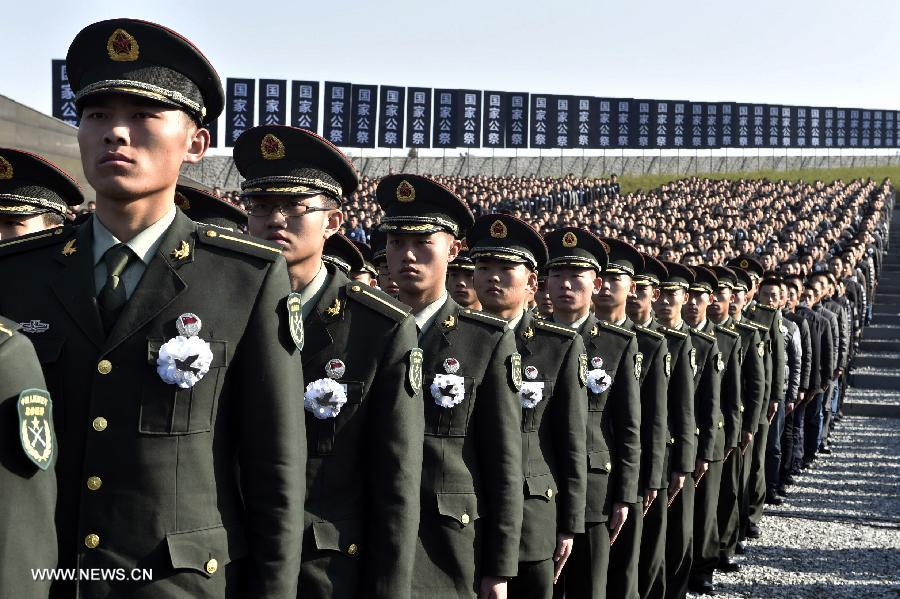 | The state ceremony for China's first National Memorial Day for Nanjing Massacre Victims is held at the memorial hall for the massacre victims in Nanjing, capital city of east China's Jiangsu Province, Dec. 13, 2014. (Xinhua/Xie Huanchi) |