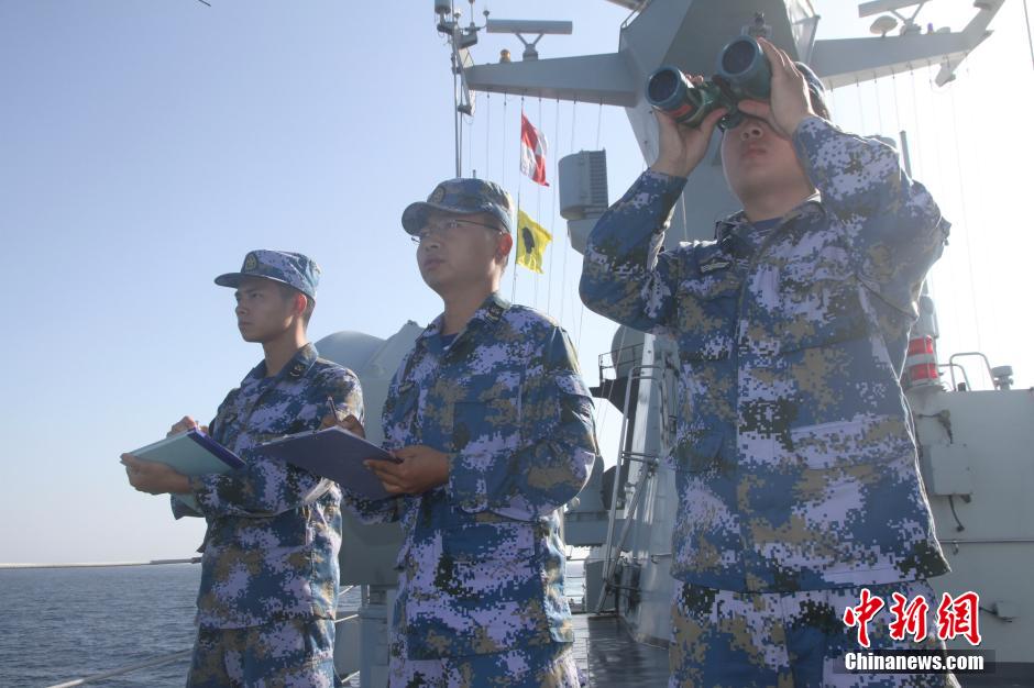 Chinese naval vessels conduct an unplanned encounter drill with US counterparts in Gulf of Aden in accordance with the Code for Unplanned Encounters at Sea (CUES). This is the first unplanned encounter drill between China and the US in the region. (Chinanews/Xiao Yong)