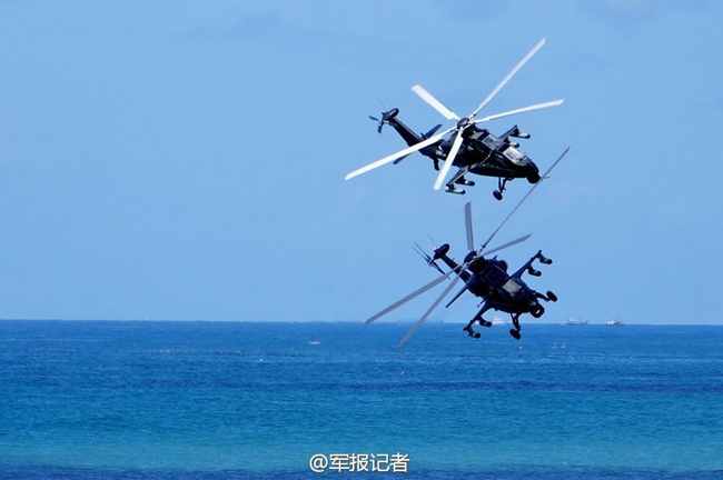 Equipped with helicopters and light airplanes, the army aviation serves as a supportive force to ground forces. It is an important part of the modern army, responsible for destroying tanks, armored vehicles and military installations, aerial fire support, transporting troops and military materials as well as conducting aerial reconnaissance and electronic wars. (Photo source: official microblog account of PLA Daily)