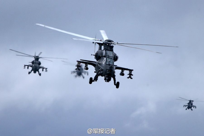 Equipped with helicopters and light airplanes, the army aviation serves as a supportive force to ground forces. It is an important part of the modern army, responsible for destroying tanks, armored vehicles and military installations, aerial fire support, transporting troops and military materials as well as conducting aerial reconnaissance and electronic wars. (Photo source: official microblog account of PLA Daily)