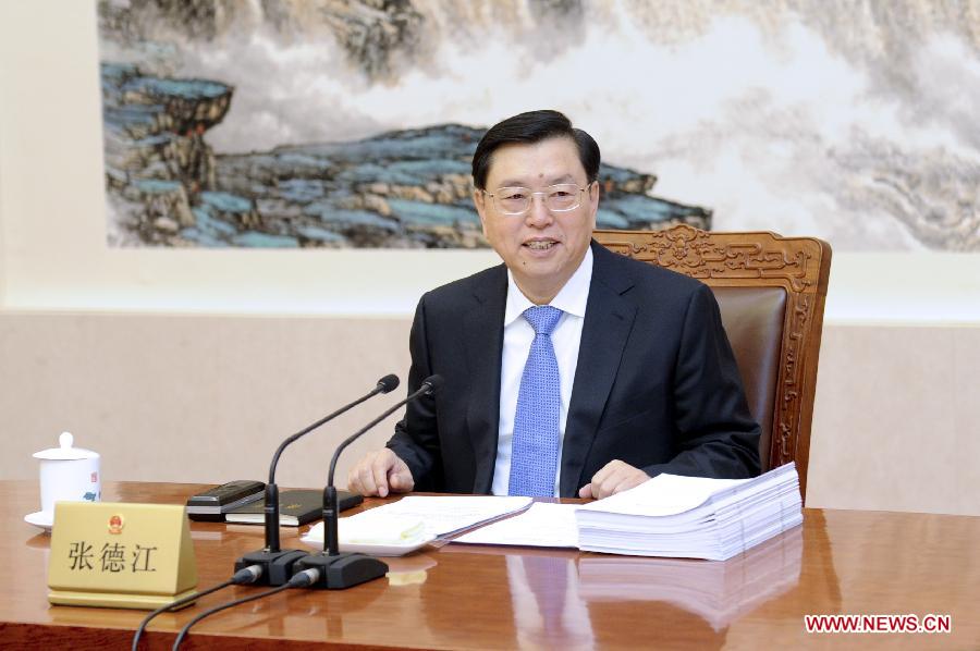 Zhang Dejiang, chairman of the Standing Committee of China's National People's Congress (NPC), presides over the 36th meeting of the NPC Standing Committee's chairman and vice chairpersons, at the Great Hall of the People in Beijing, capital of China, Dec. 15, 2014. (Xinhua/Zhang Duo) |