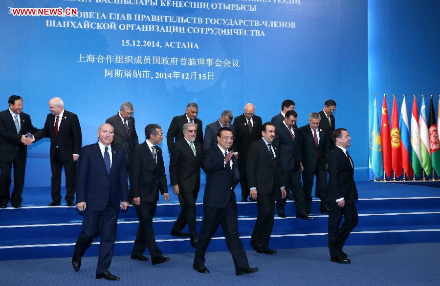 Chinese Premier Li Keqiang (C front) attends the 13th prime ministers' meeting of the Shanghai Cooperation Organization (SCO) in Astana, Kazakhstan, Dec. 15, 2014. (Xinhua/Pang Xinglei)