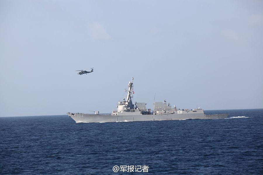 Chinese naval vessels conduct a joint anti-piracy drill with U.S. counterparts in Gulf of Aden and Somali. (Photo/JZ.81.cn)
