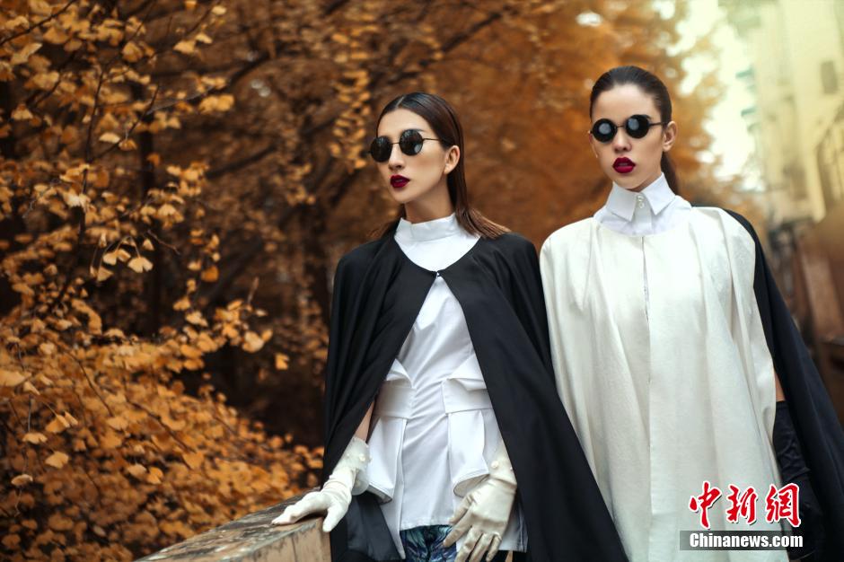 December is the best month to enjoy the gingkos in Chengdu. In Jinxiu Lane of the Wuhou District, two models take fashion photos. (Chinanews/Zhong Xin)