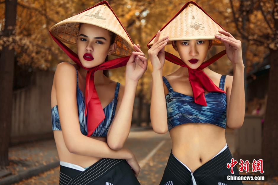 December is the best month to enjoy the gingkos in Chengdu. In Jinxiu Lane of the Wuhou District, two models take fashion photos. (Chinanews/Zhong Xin)