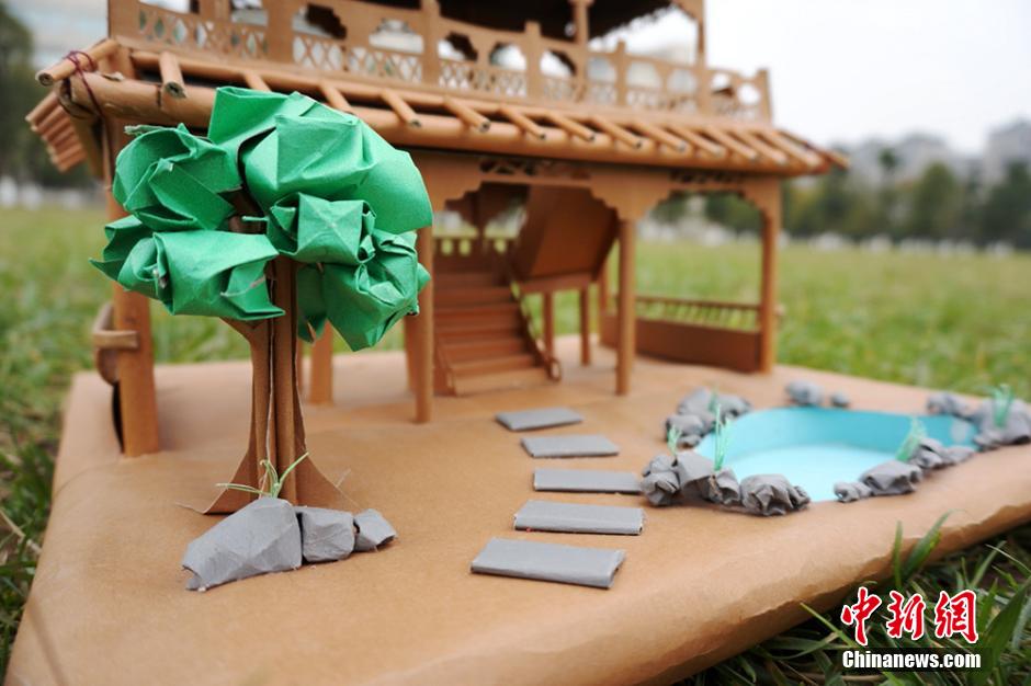 College students build a villa with 4,000 sticks (3)